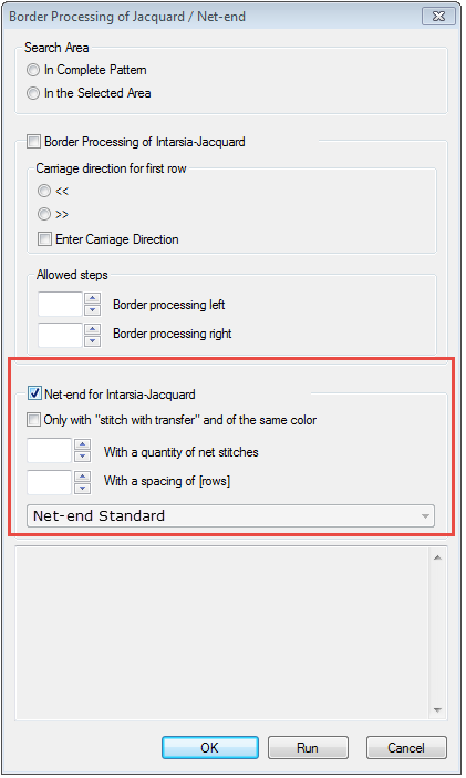 - Ouvrir la boîte de dialogue Élaboration du bord Jacquard / Fin de réseau.