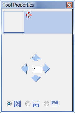 Input of a number (factor): Moving the selected element with each click on a direction arrow by the factor entered