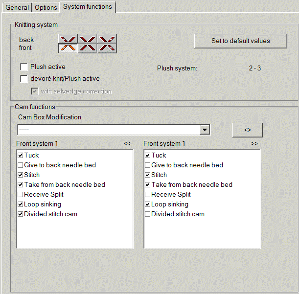- Une "came de chute divisée" peut être configurée séparément pour chaque chute et pour les deux directions de chariot.