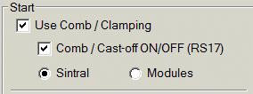 Under the Comb, Clamping section, the following functions are automatically selected, if Cast-off ON/OFF (RS17) was selected with the start.