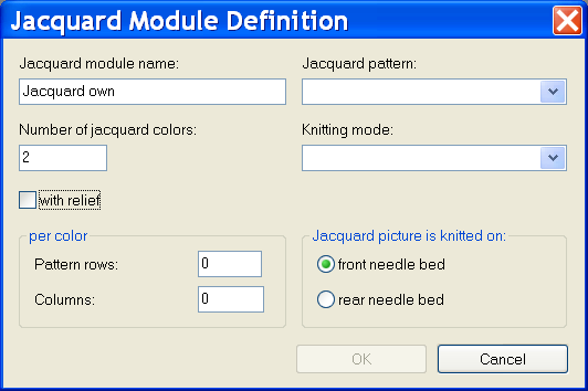 - Le propre module de jacquard peut être sélectionné dans la boîte de dialogue Jacquard.
