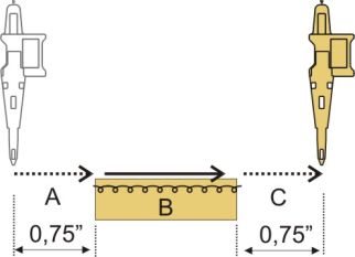 : La surcourse est de 0,4" (6 nic). Cela assure une meilleure insertion du fil lors du tricotage suivant.