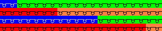 Guide-fil non basculé | Le guide-fil est arrêté dans le champ de couleur adjacent.