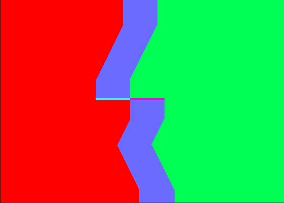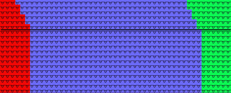 Le changement du champ de couleur est décalé d'une rangée sur la hauteur. Cela améliore l'entrelacement au bord du champ de couleur.