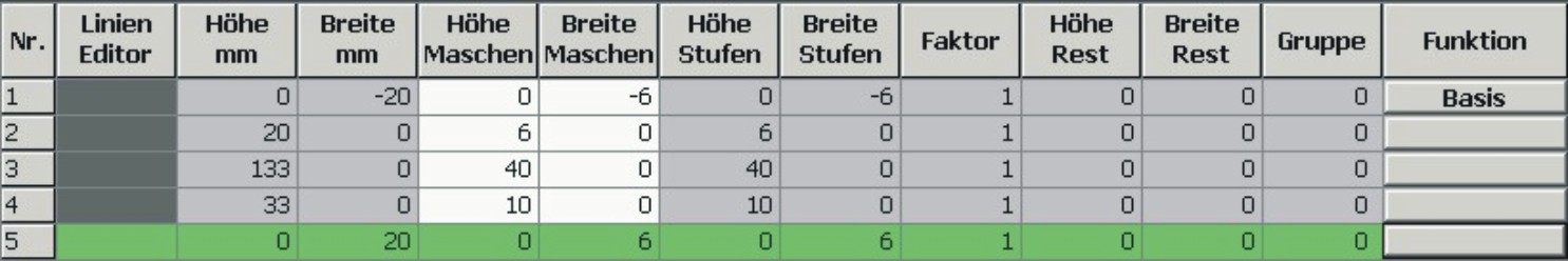 - Über Linien links die Tabelle anlegen und die Werte für das Vorder-/ Rückenteil eintragen.