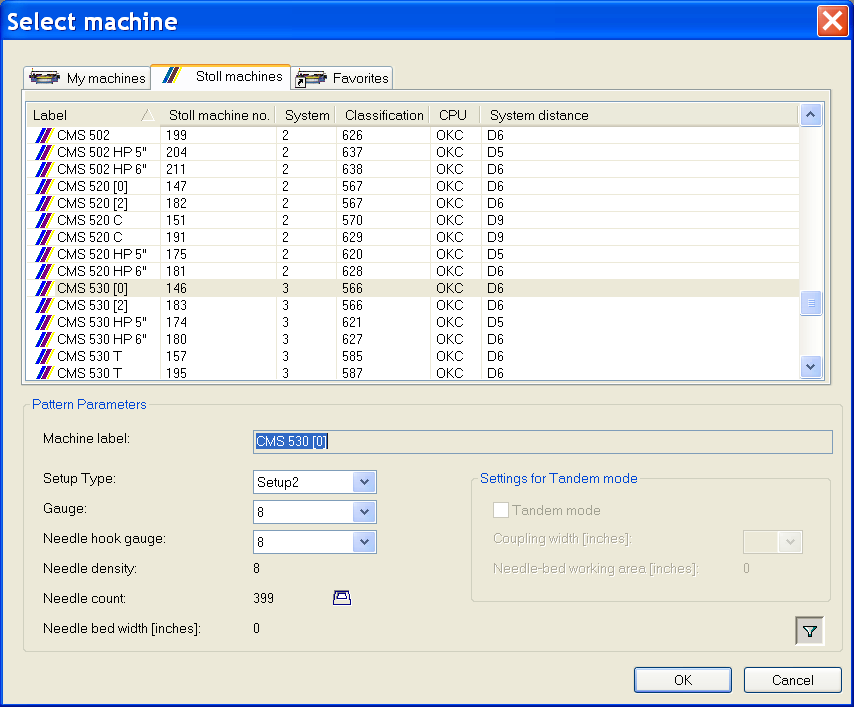 - Indiquer les valeurs prédéfinies désirées dans le choix du type de machine Tandem sous .