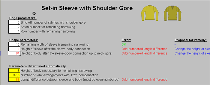 - Richiamare Set-in-Sleeve with Shoulder Gore (Calculator).