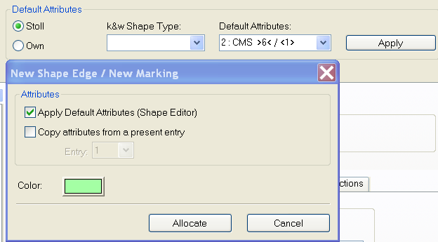 - Selezionare attributi standard nei dialoghi Attributi della forma e Completa cimose mancanti.