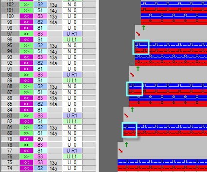 - Nei ranghi tecnici 81 e 95 non si adatta alla correzione della selezione dell'ago del rango precedente (rossa).