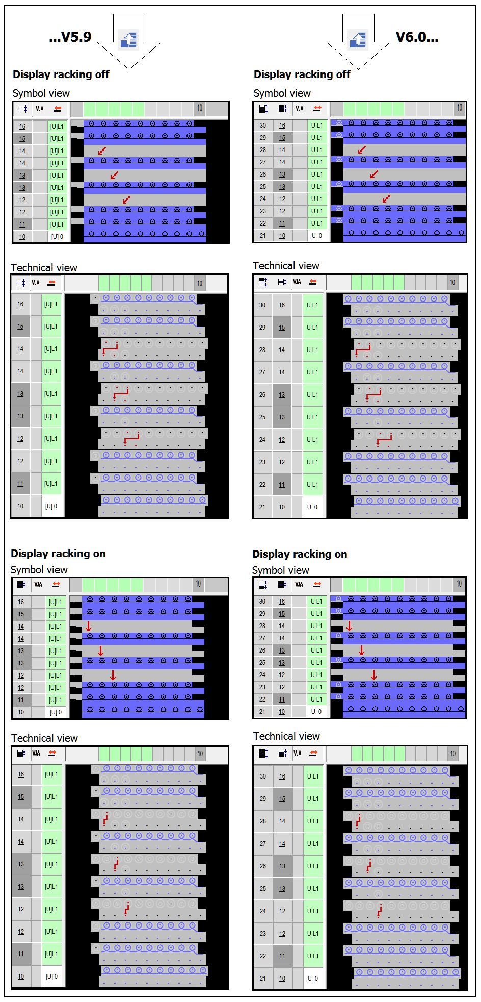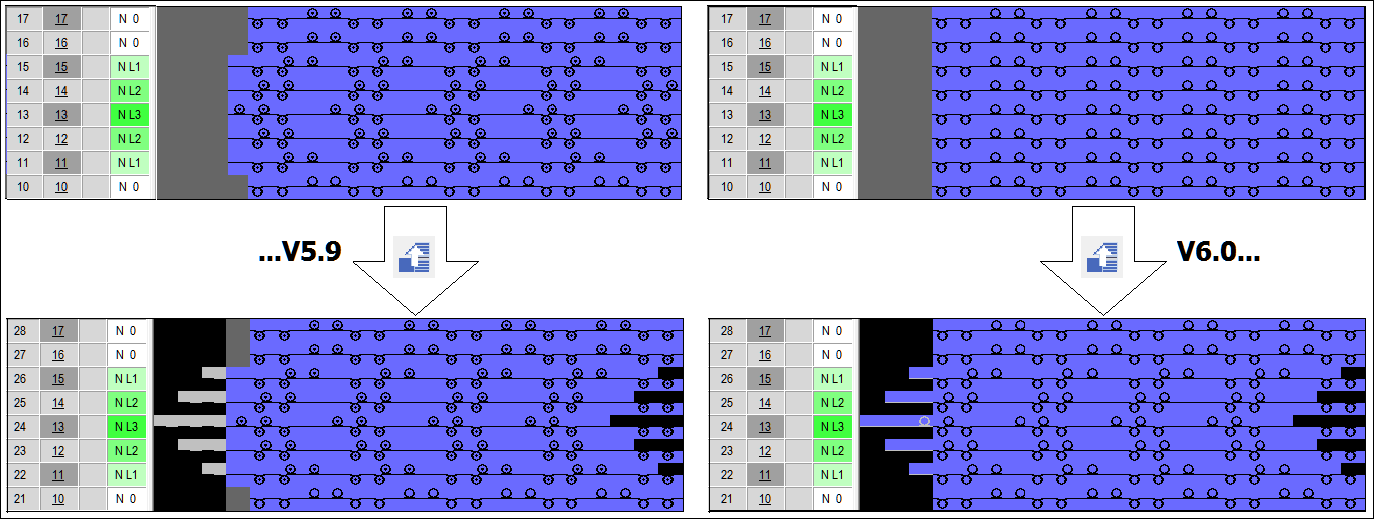 I disegni esistenti vengono espansi con lo stesso risultato, se la colonna di comando dei ranghi in questione riceve manualmente la voce VJA^v.