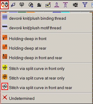 Indicazione Sintral per maglia su curva split davanti e dietro con camma di discesa divisa: #XS%AH(5) %HY (6);