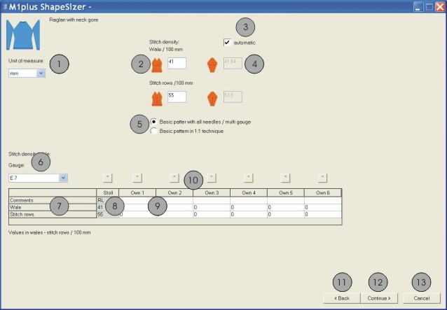 - Viene caricata la forma selezionata con gli attributi standard Stoll e si apre la finestra di dialogo successiva della M1plus ShapeSizer.