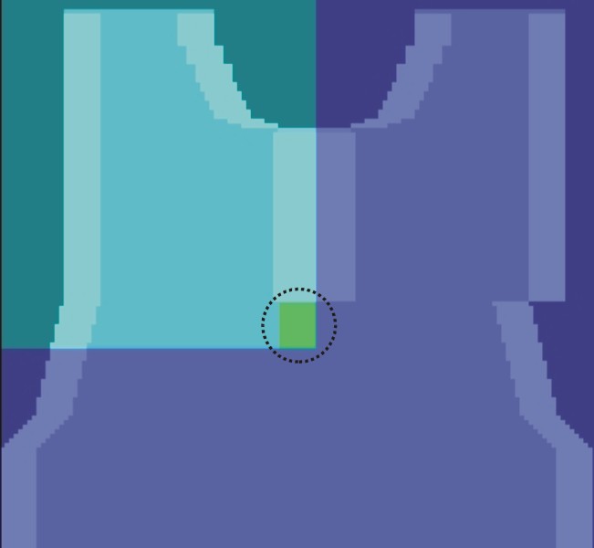 - Per tracciare un colore del filato al di sotto della finta (dissolvenza nella scollatura):