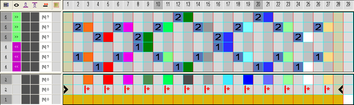 - Nel disegno base devono essere tracciati per il CA colori supplementari del filato come colori di ricerca.