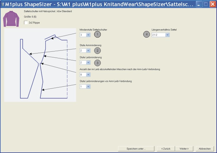 - Die Maßeinheit (2) und die Maschendichte (3) + (4) werden zur Weiterbearbeitung verwendet.