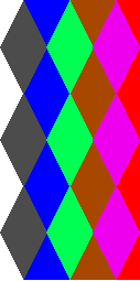 Visualizzazione di rombi e ambiente con colori diversi dalla tavolozza Colori del guidafilo e selezione nella casella di riepilogo del Color Arrangement desiderato.