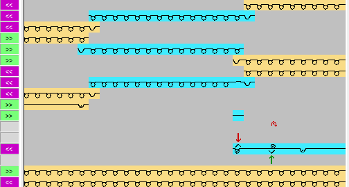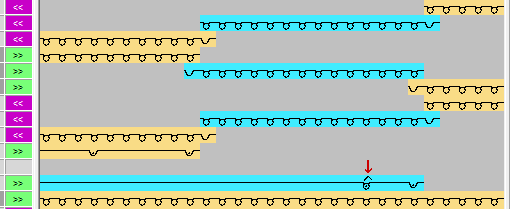 Für Restgarn (Schuzureihen) am Musterende. Kann auch bei Farbringel verwendet werden, um Faden am Musterrand einzubinden. |