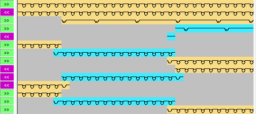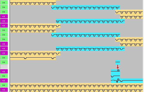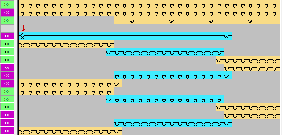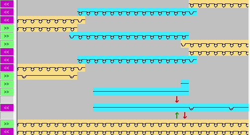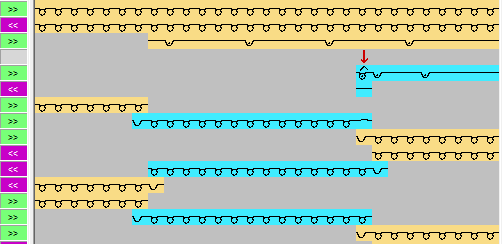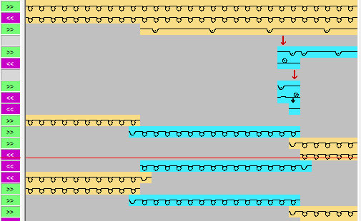Mögliche Modulzuordnungen für Intarsia Ein- und Ausstricken: