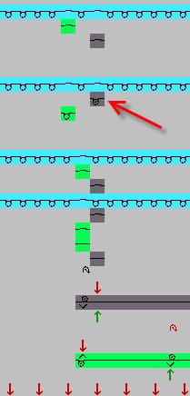 Verwendung O.K. Split und Fang im selben System, Offset verwenden für Einstricken | |