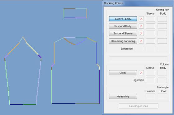 2. The knitting sequence for the sleeve-body connection is entered until the connection line.