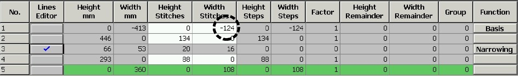 The total width of the shape should be divisable by 4 (module with of the 2x2 rib). The result of the division has to be even numbered. Example: Total width 144 divided by 4 = 36 |