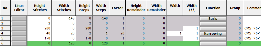 - Os cantos exteriores são ocultados com uma malha de largura e com uma cor de fio. Estas cores adicionais se precisam para os Color Arrangements necessários.
