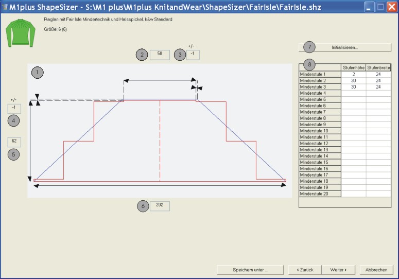 Graphic presentation of the Fair Isle stepping calculated by the ShapeSizer. |