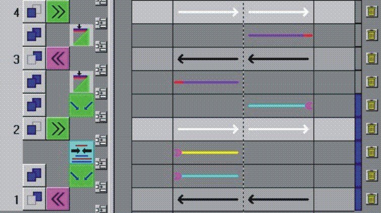 The last two shape rows are widened over the entire width of the gore in accordance with the carriage direction. The attributes used in this shape edge are applied to the entire width.