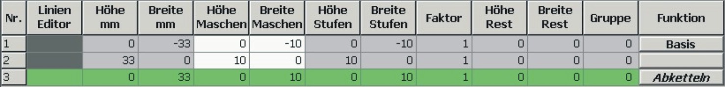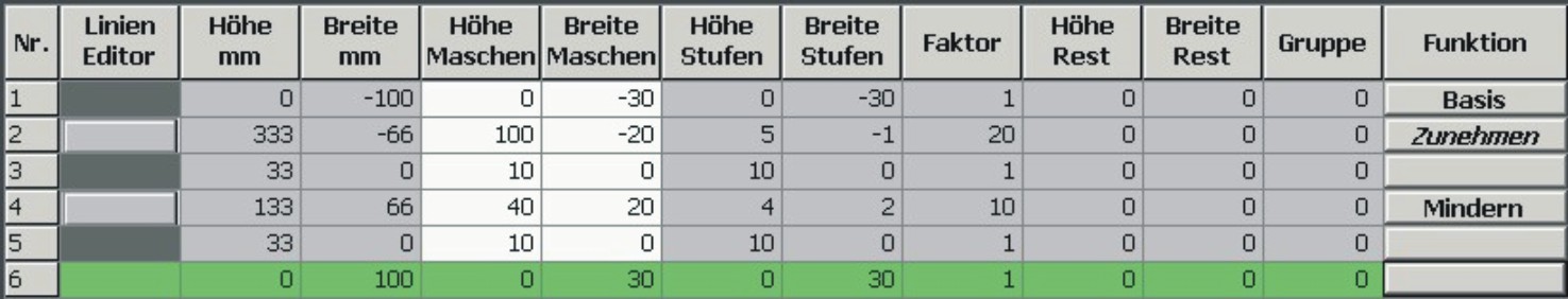 Über Linien links die Tabelle anlegen und die Werte für das Vorder-/ Rückenteil eintragen.