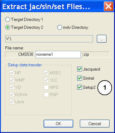 The Setup type 1 was selected when generating the program. Under Setup data transfer select the data to be extracted which are to be saved in the setup file. Result: The data will be extracted to sin / jac / set files and saved. |