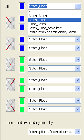 II. Selection possibilities for embroidery stitch elements and interruption embroidery stitch