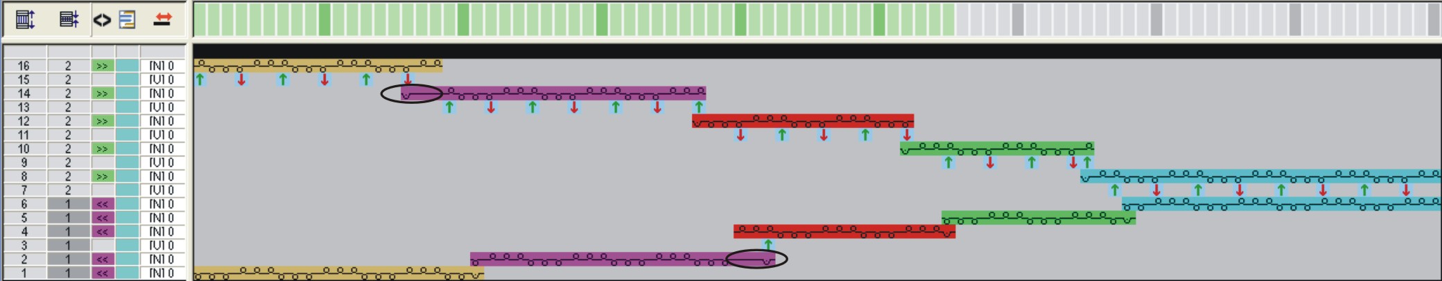 在有+符号的列中,总是需要输入颜色和织针动作或无条目.
