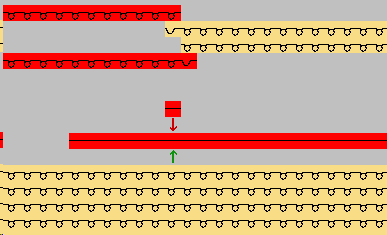 - With certain structure pattern, knitted by the leading S1 and transferred by the following S2, the transferred stitches may be not enough sunken and due to it, the needle latch of the receiving needle may not open.