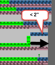 | 纬纱将在颜色区域边缘被包住。 如果不选择这个选项,可能会有一段距离保持未被包覆的状态。 |