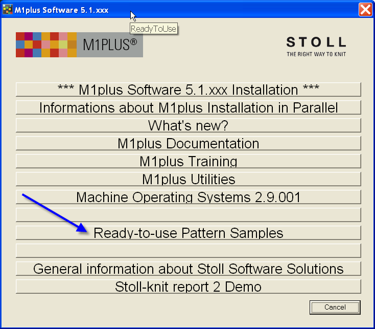 M1plus DVD 上的花型实例 Ready-to-use Pattern Samples M1plus Program DVD目录中的Ready-to-use Pattern Samples里有花型示例:使用颜色排列(Color Arrangement Samples)切模织可穿(Stamp out Samples)
