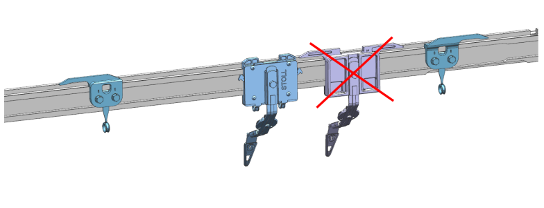 - 绝对不能将普通2型导纱器和其他普通导纱器或添纱导纱器在一条轨道上混用。