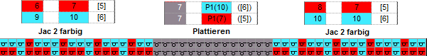 通过工艺处理过程,相邻的提花和添纱编织区域的编织行被准确拆分开来。