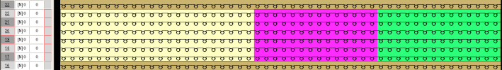 对于使用多针距的嵌花区域,你需要在对话框纱线区域分配中指定连接, 因为这不能完全依靠颜色排列。