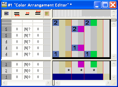 使用颜色排列中的控制列,确定不同动作的相应参数。颜色排列控制列中的数据不会随后被M1plus覆盖。