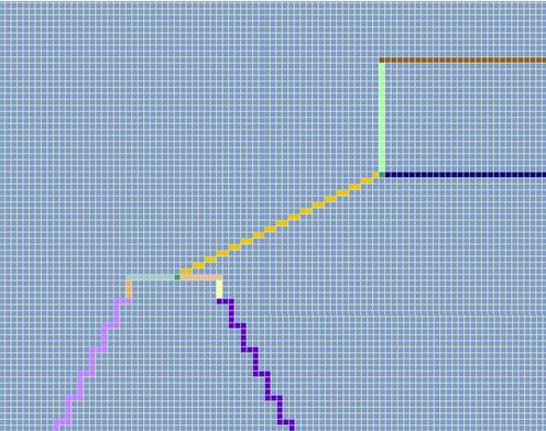 - 输入袖子-大身连接区域的编织顺序直至连接线。