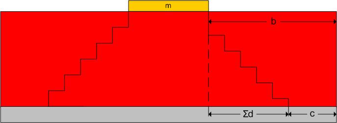 - 前片楔形宽度(b) 与后片楔形总宽度(Ʃd + c)相同。