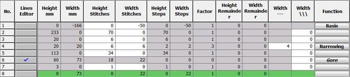 - 在第5行和第6行将袖子上层分离模块分配给收针边缘。