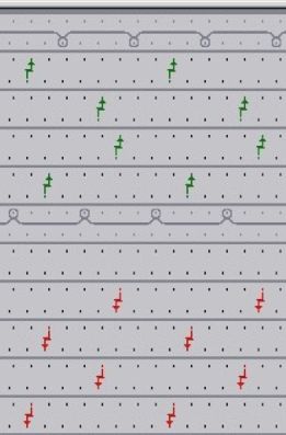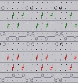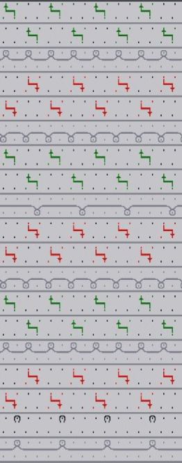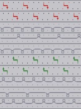 L0: L1: 后针床:按L0镜像翻转之后的情形编织,每次编织之后将内侧编织的织针翻针。