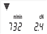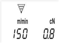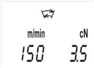 在编织过程当中,当前操作模式和工作纱线张力、纱线张力减量或者往复卷取张力将显示在装置上。纱线速度以m / min表示,纱线张力以cN表示。