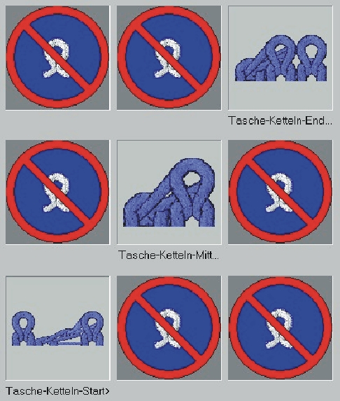 - 分配到这个纱线颜色的导纱器将被用于拷针,然后被带回原始位置.
