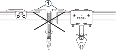 Normal-Fadenführer Typ 1 mit Intarsia-Fadenführer Typ 2 |
