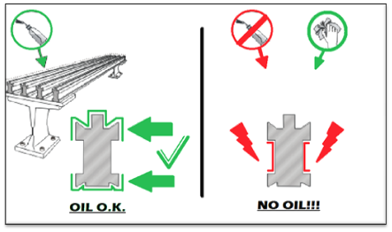 Reinigen und Ölen der Fadenführer-Schienen beim Einsatz von Intarsia-Fadenführern