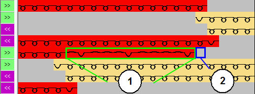 Kürzen: Änderung der Farbfelder entsprechend der Schlittenrichtung