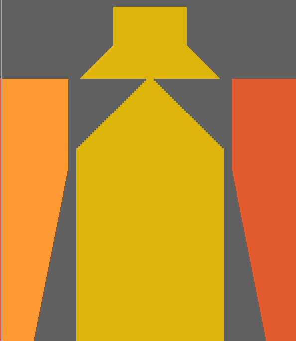 - 在外侧模型边缘上,将对应于收针边缘步进的放针步进带入到楔形中(红色)。