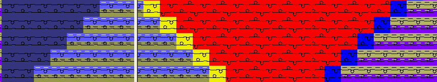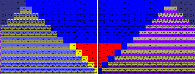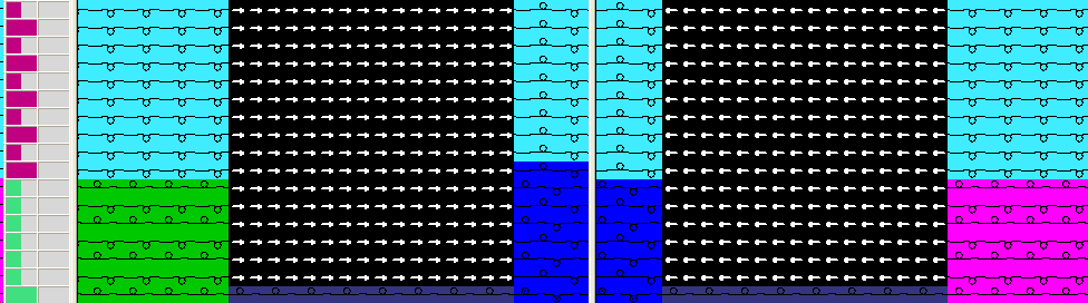 - 在楔形末端向上两行处带入导纱器颜色#79(=一个完整的动程)。